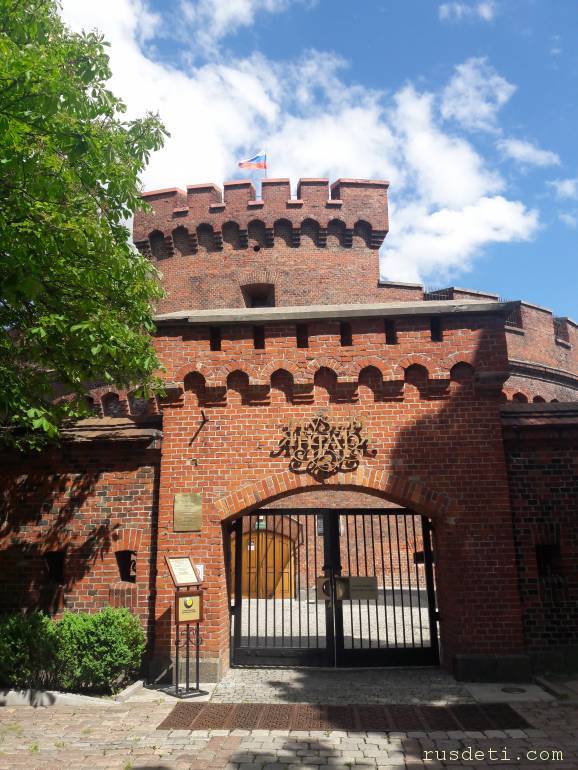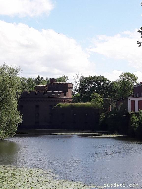 Первое, что я встретил из интересного, была башня Врангеля, по-немецки "Wrangelturm". Башня была построена в 1853 году как часть защитных сооружений Кёнигсберга и получила своё имя в честь генерала-фельдмаршала Врангеля. Проект был разработан Эрнстом Людвигом фон Астером. Башня Врангеля, вместе с башней Дона (о ней я тоже расскажу, ведь она, в отличии от башни Врангеля, очень знаменита!), были призваны прикрывать Верхний пруд (Верхнее озеро), как самое слабое место в обороне. В 1944 ней были оружейные склады, а после перешла под контроль Красной Армии. Ныне там собираются открыть очередную кафешку.