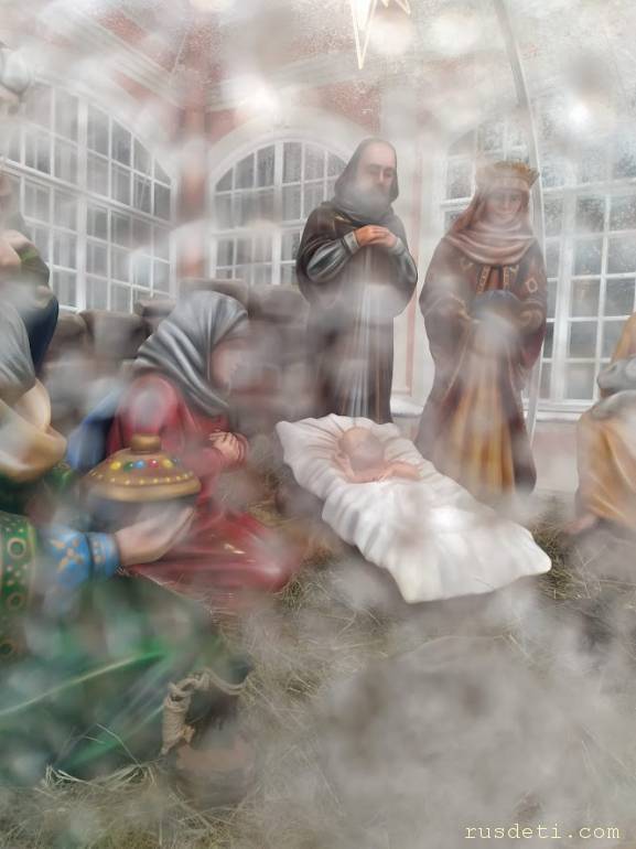 К сожалению, защитная плёнка вертепа заиндевела, а хорошо отогреть плёнку не получилось.