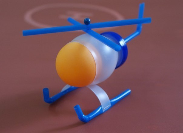 Вертолёт из пластиковой бутылки, трубочек для коктелей и яйца от киндер-сюрприза.
