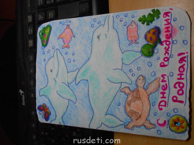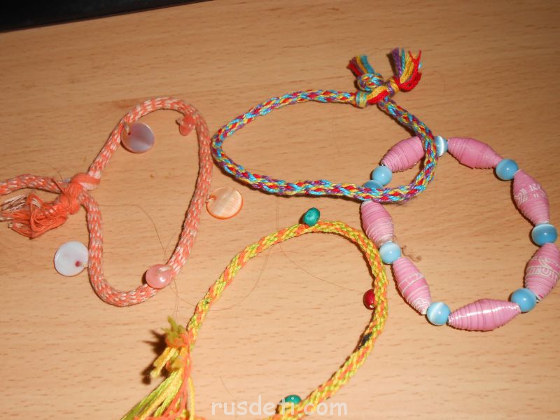 Решила выложить и своё. На этот раз - открытка сестре (24 августа у нее был день рождения) и фенечки. Плету я их из ниток мулине. Добавляю иногда бусинки и разные другие украшения. Ещё в такой технике работает сестра, она делала мне так шнурочек для крестика. Не трудно, удобно, красиво