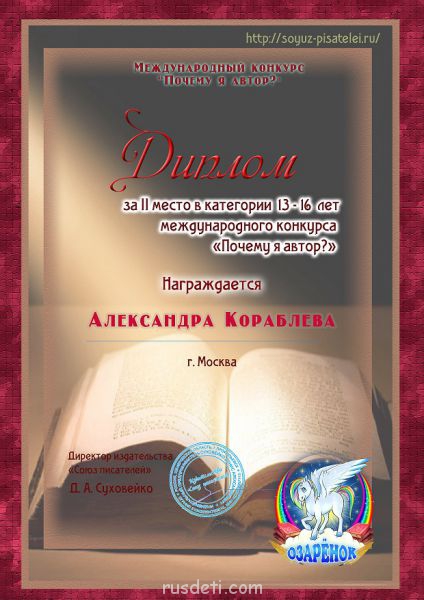 Сегодня пришли результаты конкурса с сайта "Союз Писателей". У меня - призовое место, урра!