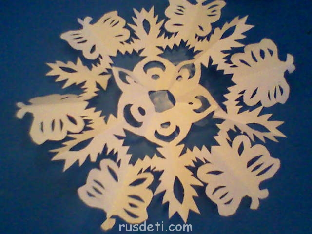 В заключение склеиваем две половинки между собой. серединку можно украсить с обеих сторон (снежинка-объёмная).