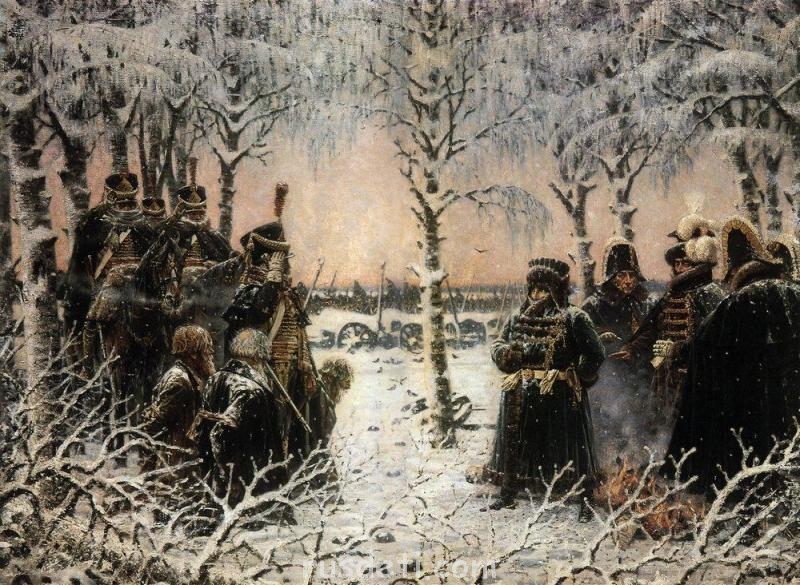 Наполеон много говорил об этом великом походе: «Я пришел, чтобы раз навсегда покончить с колоссом северных варваров. Шпага вынута из ножен. Надо отбросить их во льды, чтобы в течение 25 лет они не вмешивались в дела цивилизованной Европы. Балтийское море должно быть для них закрыто... Цивилизация отвергает этих обитателей севера. Европа должна устраиваться без них...»