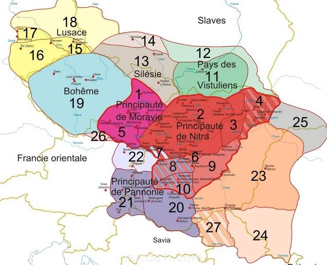 Это, скорее всего, обозначены границы Великого Моравского княжества, 9-10вв.